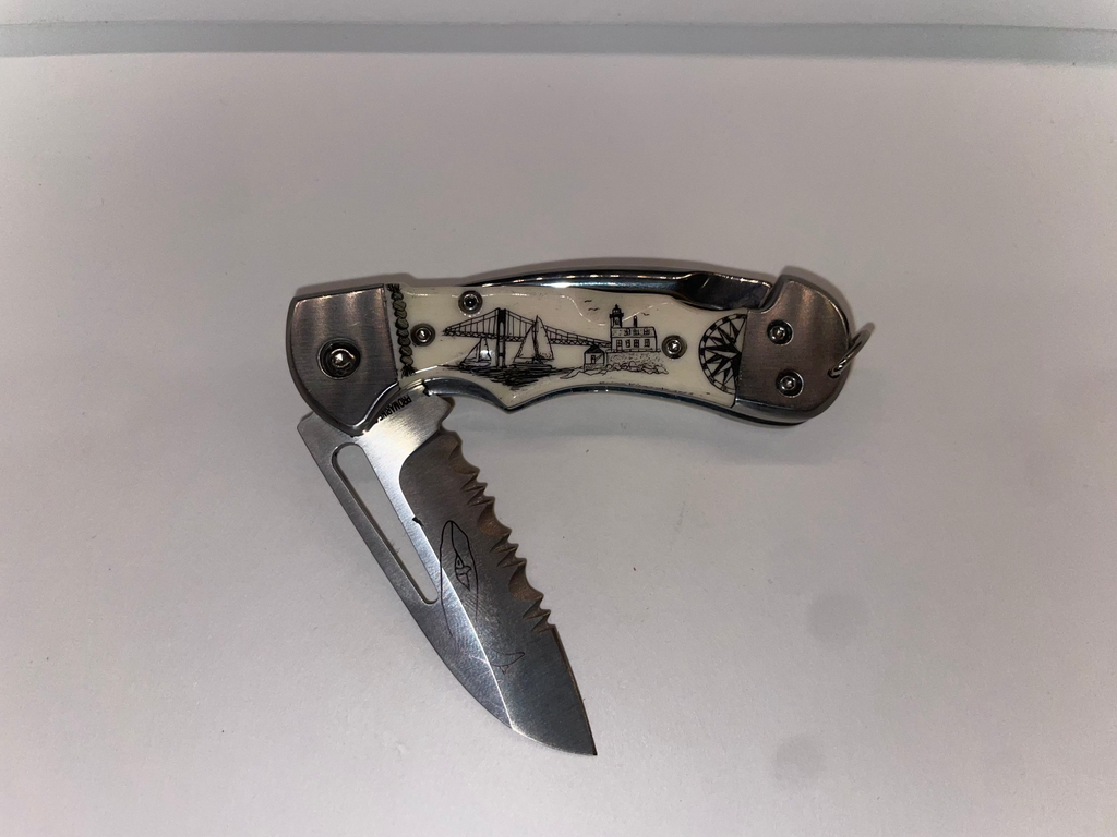 Serrated Myerchin Rigging Knife with Scrimshaw