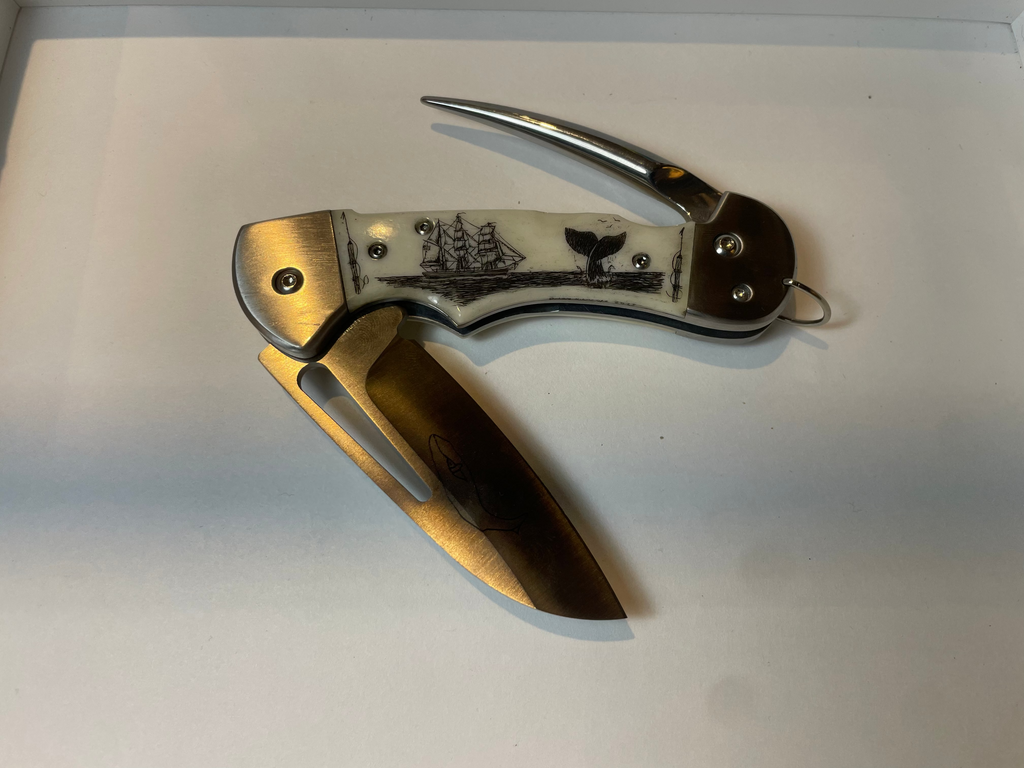 Lockback Bone Knife with Scrimshaw by Jade Gotauco