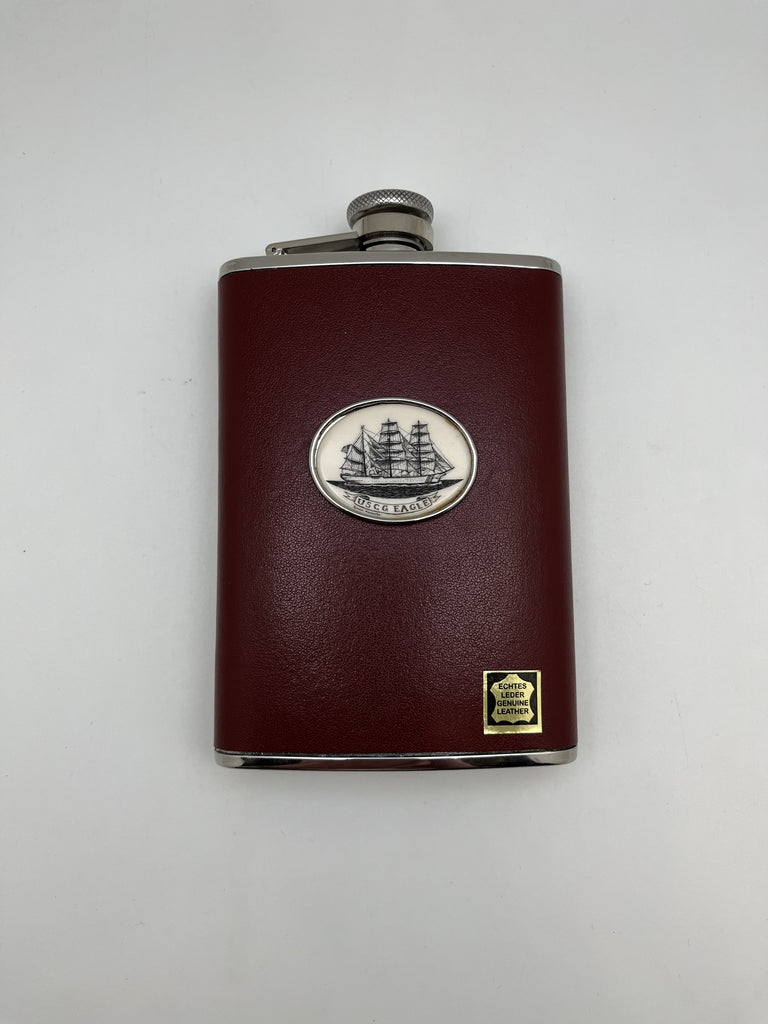 Flask - Burgundy Leather and Repro Scrimshaw
