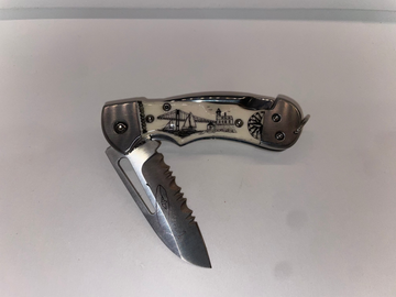 Serrated Myerchin Rigging Knife with authentic Scrimshaw by resident artist Brian Kiracofe.